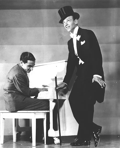 Luckily, technology had improved by 1935 and Berlin was lured back to Hollywood to score Top Hat, the fourth screen appearance by the legendary team of Fred Astaire and Ginger Rogers. Five Berlin tunes appear in the final picture - each of them beautifully crafted to the dancing talents of Astaire and Rogers - including “Cheek to Cheek” and “Isn’t This a Lovely Day?” Top Hat was the biggest financial success of all the Astaire-Rogers films and is considered to be one of the most enduring (and endearing) films of the 1930s in any genre. Berlin would score two more films for the team: Follow the Fleet (1936; “Let’s Face the Music and Dance”) and Carefree (1938; “Change Partners”). In addition to burnishing the screen iconography of Astaire and Rogers, Berlin displayed his knack for screen innovation with a Technicolor dream fantasy for the film Carefree which would use the tune of “I Used to Be Color Blind” (alas, the technology was not equal to his imagination and the sequence was filmed in black-and-white).